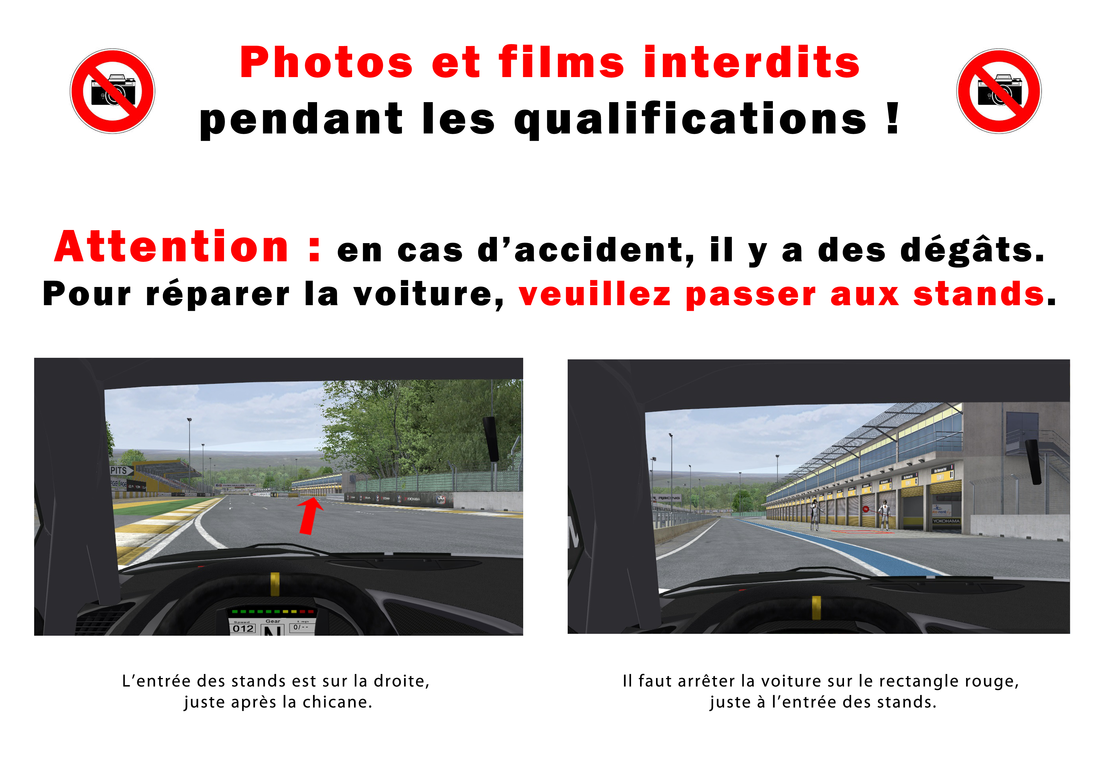 La sélection: seule la voiture est connue, la sélection se fait sur une session de 15 mn de tours chronométrés, les dégats sur la voiture sont pris en compte. Un arret au stand est possible pour réparer . (voir la fiche de procédure d'arrêt aux stands ci-dessous)